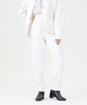 ホワイトLEVI'Sコーデ⭐️⭐️ バックプリント白Tシャツ✖︎ 「RED」ハイルーズテーパード‼︎‼︎👖✨ Tシャツは、ゆっくり目のデザインなので秋にはレイヤードも楽しめます‼︎👍 後の雲柄がシンプルですがインパクトありなのでこの1着で十分、主役になれます😍 デニムは膝下に掛けてのスッキリ感に程よいゆとりが可愛いです👍 太めのステッチも魅力的😎😎💕 白はオールシーズンで着たくなるアイテム✨✨ ぜひぜひお試ししてみて下さい😆