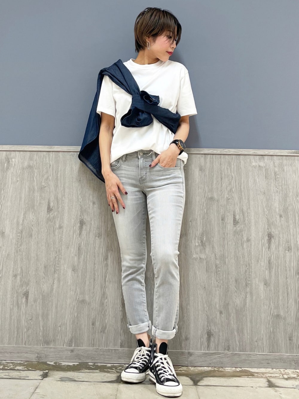 Naaachiのデニムパンツ「【累計販売18万本突破!】SOMETHING/サムシング HANA テーパードストレートデニムパンツ【日本製】」を使ったコーディネート