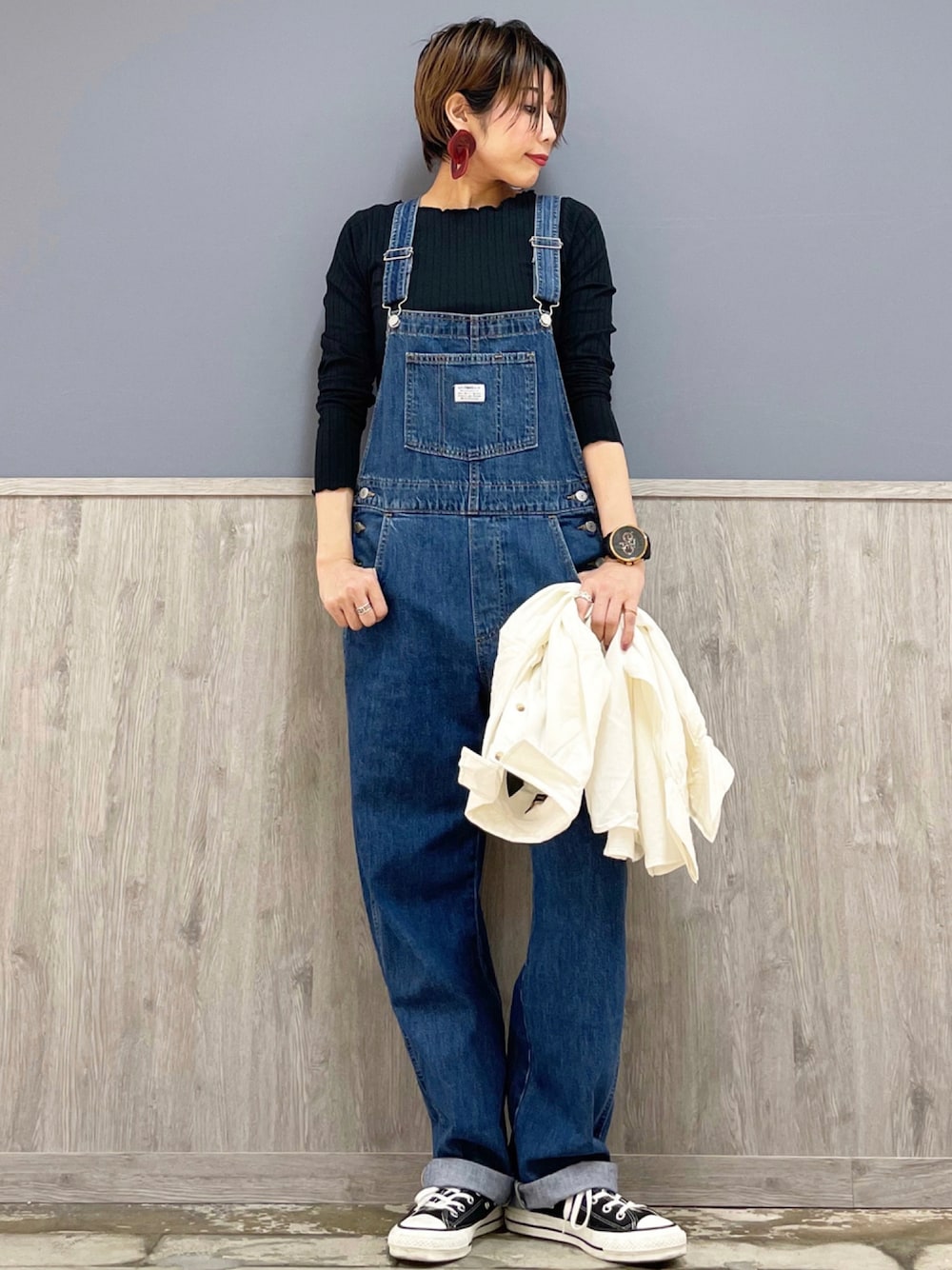 Levi'sオーバーオール⭐️⭐️ 太すぎない程よいゆったり感を楽しめるオーバーオール‼︎✨ シンプルにスッキリ可愛く合わせてみました😊 今の季節はロンT・冬にはニットやパーカーでの相性も👍👍 硬すぎない生地感にLevi'sならではの色合いを楽しんでみて下さい😆 インナートップスも着回し抜群👍 フェイスラインをスッキリと演出してくれる1着✨✨ たくさんのコーデを楽しんでくださいね😍😍