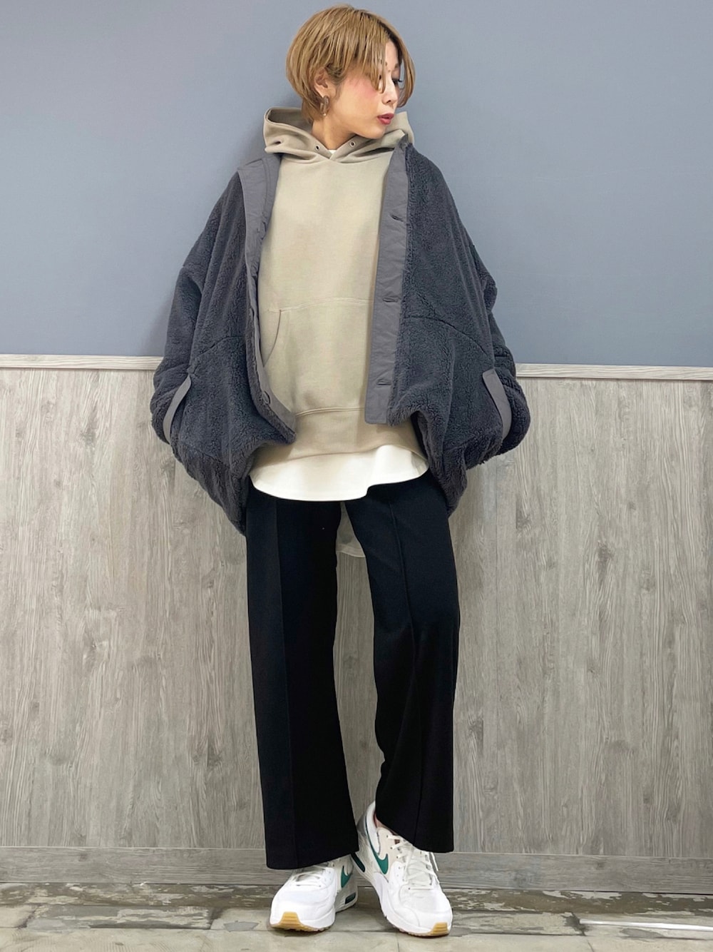 たっぽりあったかコーデ⭐️⭐️ 触り心地が気持ちよすぎるボアジャケット🥳 軽くて、ゆったりと着用でき、体温も逃げない1着です😆😆 インナーのビッグシルエットのパーカーと合わせても袖周りにも、まだまだ余裕があります✌️✌️✨ パーカーはポンチ素材になっていて、シンプルな無地パーカー😃✨ 1枚でも十分に主役になってくれます👏👏💕 今回は楽ノビシリーズの暖っかワイド🩳 程よい広がりに、程よい伸びがノーストレスでお洒落を楽しめる1本です✨✨ センタープレスになっているので足のラインを綺麗に見せてくれることも忘れていない楽ちんアイテムです🥳🥳 オススメのあったかコーデ是非ご覧になってみて下さい💕💕