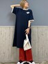 リラックスコーデ⭐️⭐️ ネイビー✖︎レンガカラーで合わせてみました‼︎ ゆったりシルエットのワンピース👗 とってもシンプルなデザインなので、細身のパンツとの相性も👌 軽くて肌に気持ちのイイ着心地です♪ そして後ろはデカデカとエンポス加工のデザイン😍😍 そして、サラッとして履き心地のいい、イージーフレアパンツ🩳 全体的にストレッチで、ウエスト周りもゴムになっていて、楽で可愛いパンツです💕 スッキリとみえるシルエットで大人カジュアルにもおススメです🫰🫰💕 是非お試しください♪♪♪ 163㌢ワンピースMサイズ・パンツMサイズ着用です。