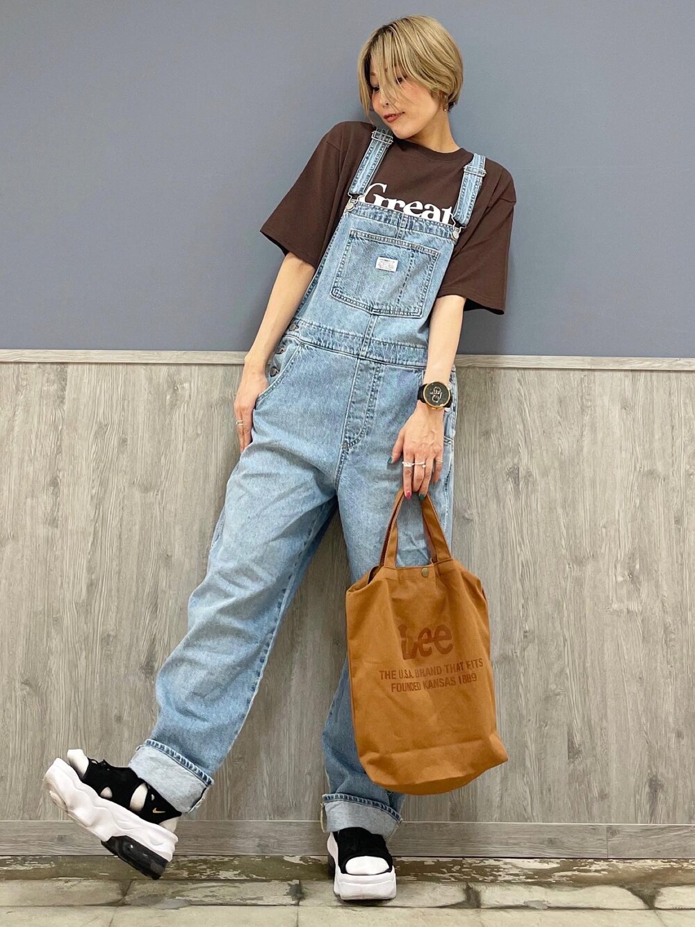 古着風コーデ⭐️⭐️ ブラウン✖︎ブルーで合わせてみました‼︎ 配色・ロゴのバランスが可愛いTシャツ👕 嬉しいのが厚すぎない、薄すぎない! 何より袖丈が少し長めになっています🌈🌈 ココは嬉しいポイント🫰✨✨ そして、プチプラ価格になっています😝 ぜひ一度ご覧になってみて下さいね♪ そしてLevi'sならではの色落ちとシンプルなデザインがどの世代からも手に取っていただきやすい1着になっているオーバーオールは、ラフにゆったりとした着心地を楽しんでいただけます😆😆 オーバーオールが初挑戦の方にもオススメです👖 是非お試しして頂きたいです👖 Levi'sならではの色落ちと、ゆったり感を楽しんで下さい♪♪♪ 163㌢トップスMサイズ・オーバーオールMサイズ着用です。