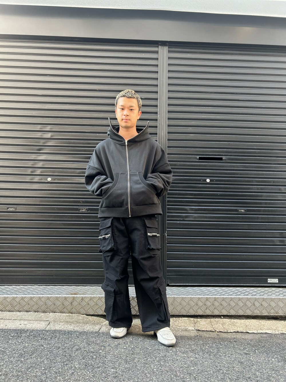 ながさきたいが(LHPアメ村店)のカーゴパンツ「DankeSchon/ダンケシェーン/PREMIUM SUPER STRETCH TC BLACK WIDE ZIP POCKET PANTS」を使ったコーディネート