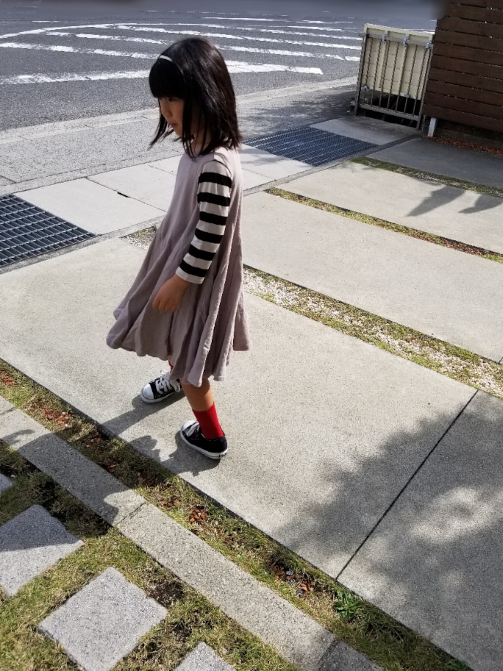 見ていただきありがとうございます🙇✨ 今日のリアルコーデ☺ 暖かかったので七分袖☀️ 去年は長袖になったのに大きくなったな👧 口に飴咥えてる🍬