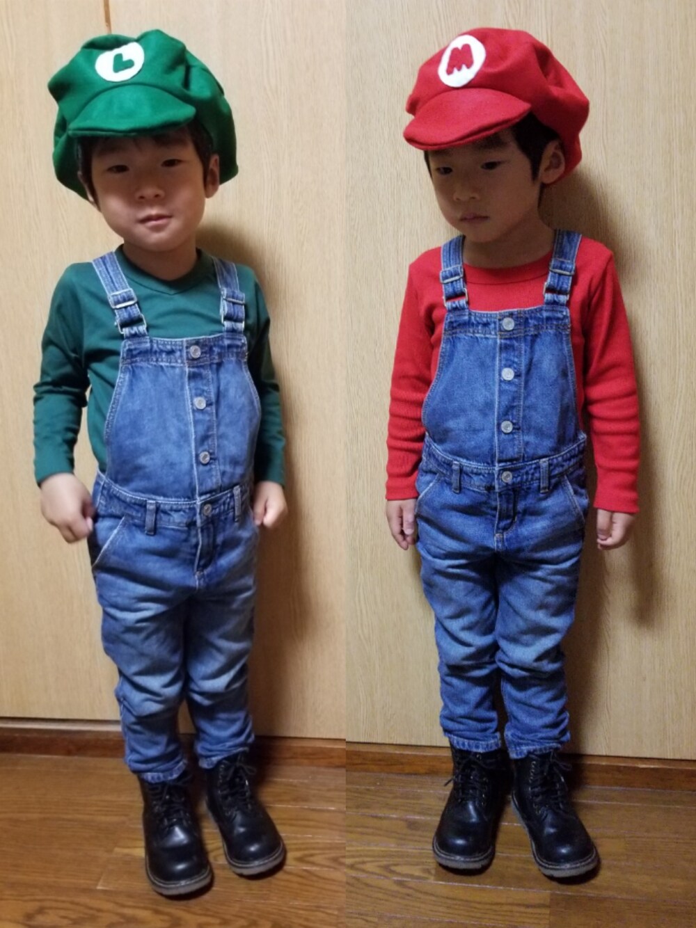 見ていただきありがとうございます🙇✨ #wearhalloween 👦くんはマリオ&ルイージで1人2役👍 最近はマリオの動画をよく見てるので、ノリノリでした💃