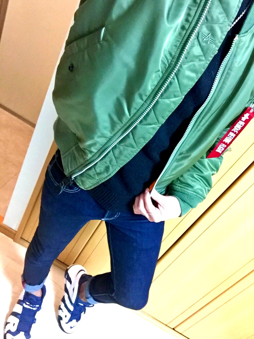 冬コーデ。 alpha MA-1 ×UNIQLO タートルネックニット ×スキニーデニム× NIKE AIR MORE UP TEMPO Olympic MA-1コーデ。モアテンまだ卸してない〜卸せない モアテンイケメンすぎ。 フォロワーのyayoさんがMA-1×ニットコーデUPしたので、僕も同じようなコーデを。コラボ?やってみたいな。 とりあえず王道のMA-1がなんだかんだ1番好き。