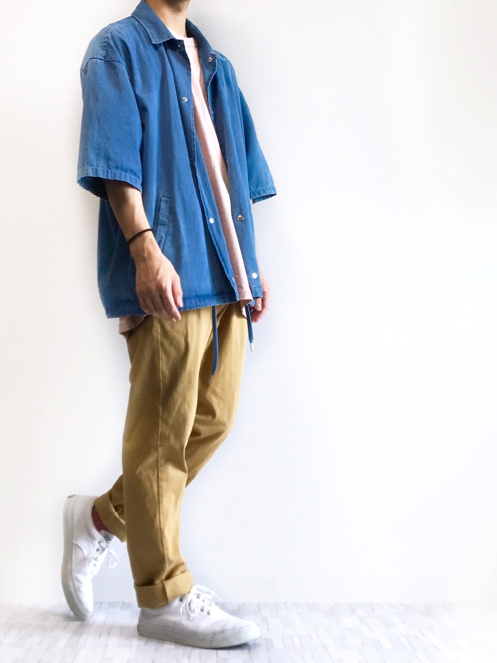 いつも、いいね お気に入り ありがとうございます♪ 感謝感謝です♪ 今日はWEGOのデニムコーチジャケット着てます! 着回し最強のやつです笑 デニムとベージュパンツは色の相性抜群ですよね♪ そこに、いつもお世話になってるピンクのビックT合わせてみました! かなり明るめの組み合わせです笑 ちょっと春っぽいコーデかなーと思ったんですけど、夏でも爽やかに着れるかなと思います! __________________________ 【size】 シャツ M Tシャツ XL パンツ S スニーカー 26