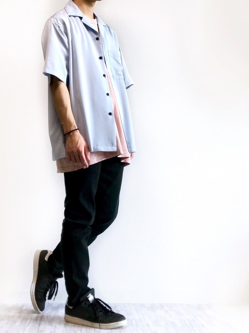 おはようございます! いつも、いいね お気に入り ありがとうございます♪ 今日はWEGOのオープンカラーシャツとUNIQLOのビックT合わせてみました! シャツの淡い水色と、ピンクのTシャツの色合いが、透明感があって好きなんです♪ 夏の暑さを感じさせない、涼しい色ですよね! 黒のスキニーと合わせることで、派手めになりすぎず、まとまりのあるコーデになったかと思います! __________________________ 【size】 シャツ M Tシャツ XL パンツ S スニーカー 26