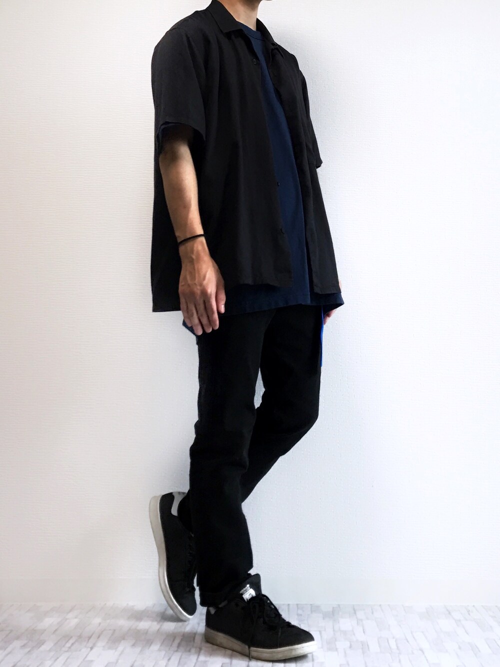おはようございます! いつも、いいねやお気に入り、ありがとうございます♪感謝です♪ 毎日暑いですね... と、いうことで... 今日はブラックコーデです!え.. 全身を黒でまとめるのは難しい印象だし、ファッション上級者のするコーデだと思い込んでいたのですが、ふと、挑戦してみました! コーデを組んでみて、ネイビーのTシャツを挟んだことによって、黒の中にもメリハリが生まれて、良い色合いになったんじゃないかと思います♪ 見えにくいですが、青のガチャベルトで腰元にも色の変化を加えてます! これからブラックコーデハマりそうです.. でも、暑いので程々にしときます..笑 __________________________ 【size】 シャツ M Tシャツ XL パンツ S スニーカー 26
