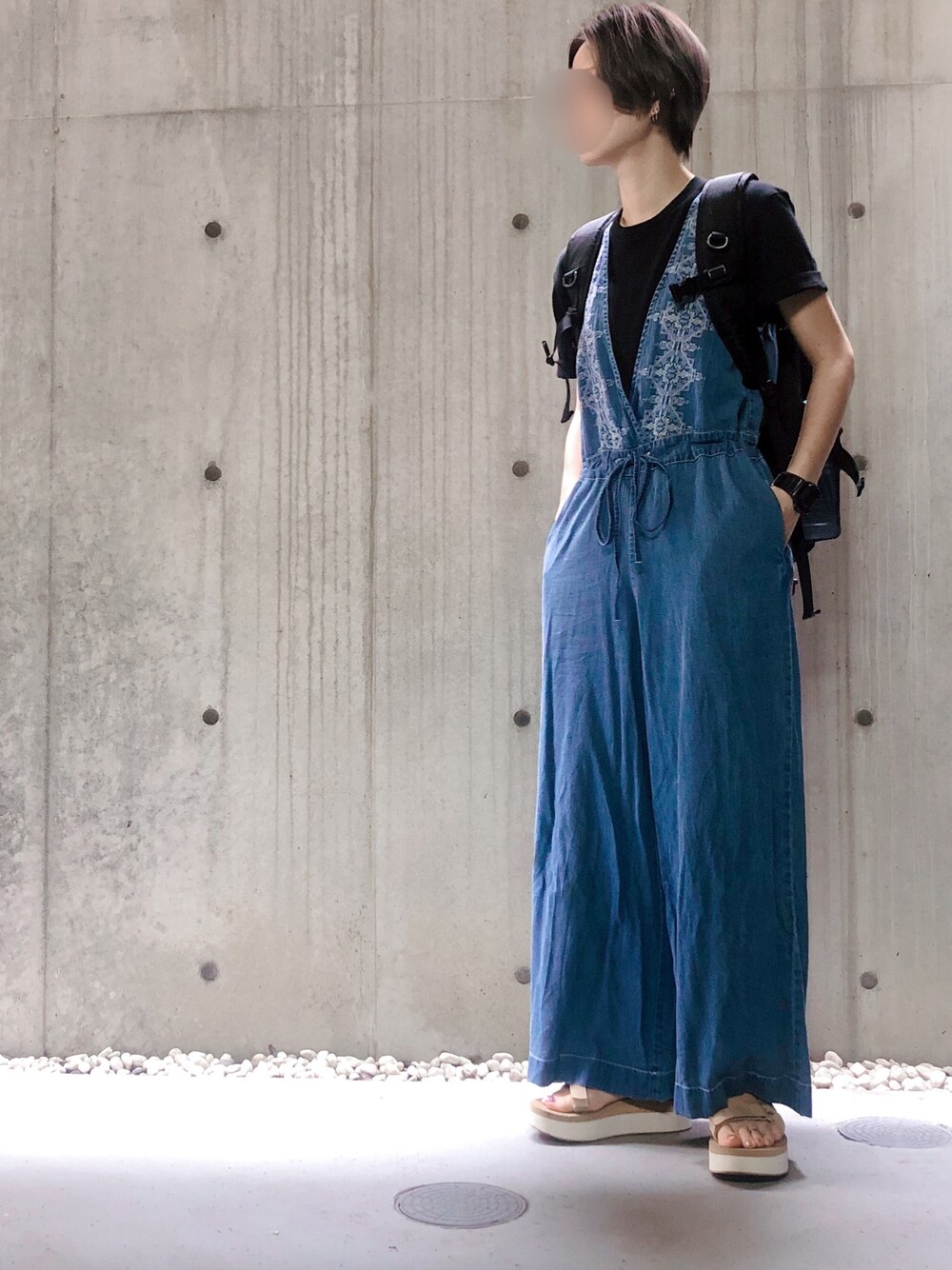 saiiのサロペット/オーバーオール「クロス刺繍デニムサロペット」を使ったコーディネート