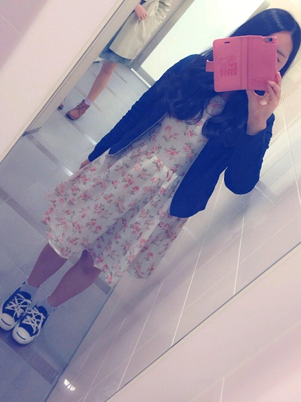 春だね。 花柄ワンピースだけだと まだ肌寒いから ブルゾンは手放せない! 黒のブルゾンは 着まわしの必需品です🙆