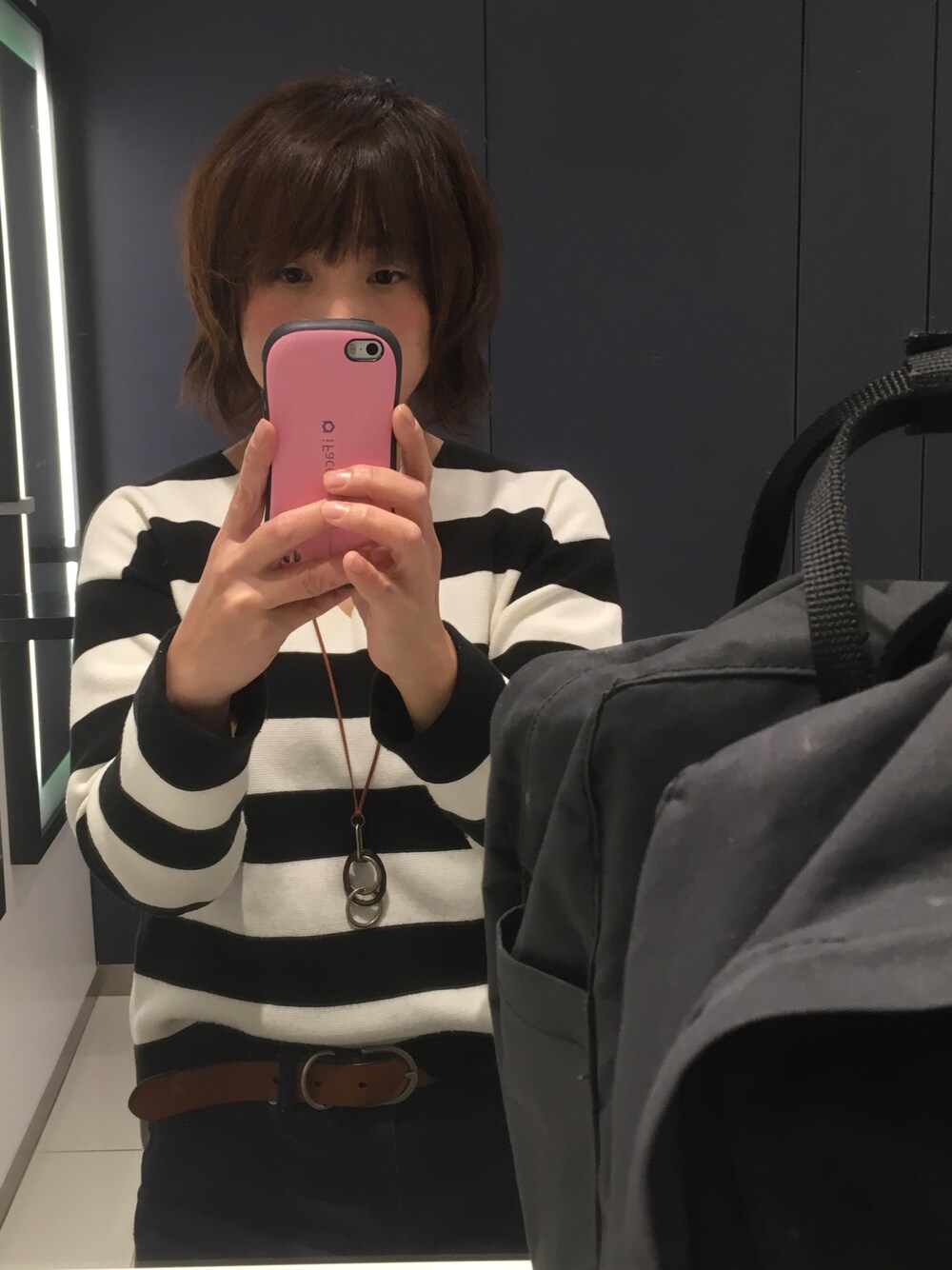 初投稿‼️ デジパかけた日 美容師さんのブロー覚えておく為化粧室でパシャリ📷 なので全身写ってません💧 毎日お気楽コーデ👕👚