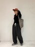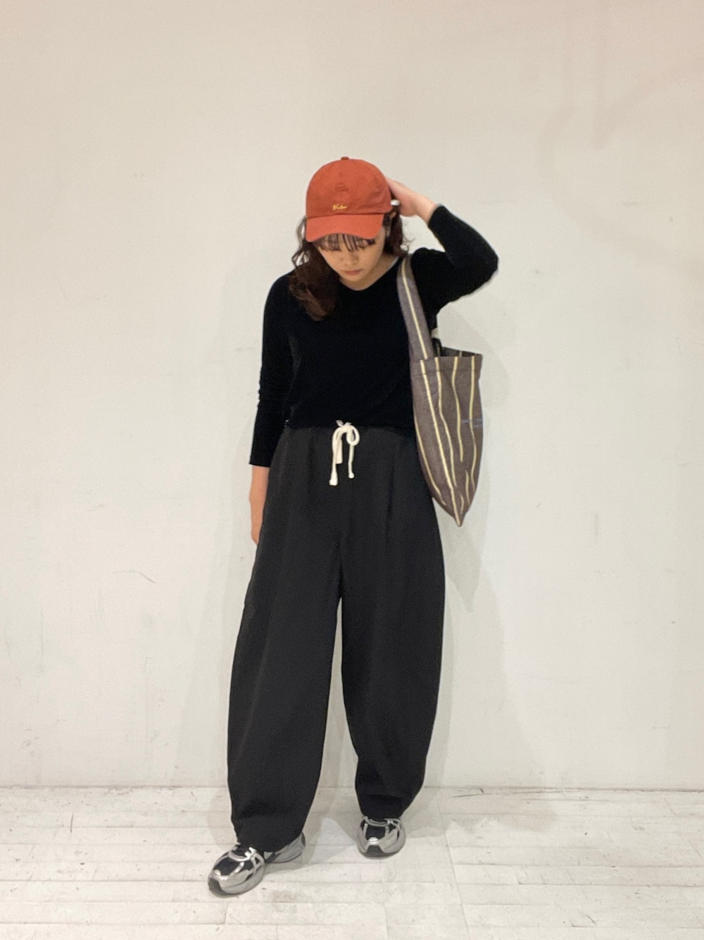 ブラックコーデです🐱 パンツは形がとってもかわいくて、裾が絞れるようになってます!