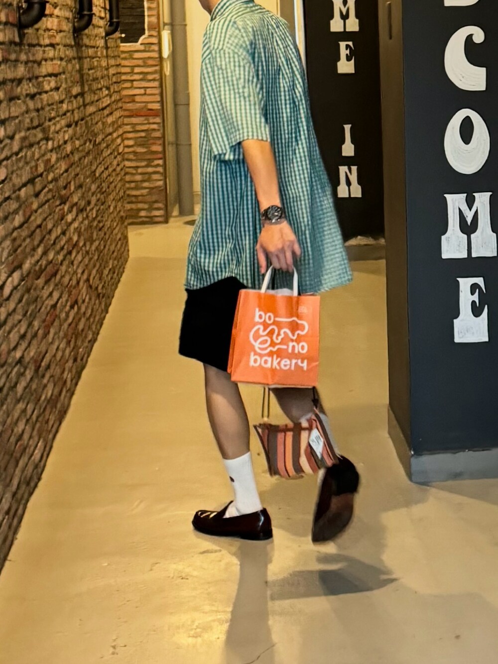夏はどうしてもショートパンツに頼りがち。。 ショートパンツはシンプルなものが多いのでシャツは あえての柄ものを。 アロハシャツやチェックシャツとの相性は◎ ソックスは長めのものを使用すると バランスが取れ綺麗に見えるよ^^ あえてスニーカーもいいけど ドレスで合わせてみてかっこいいから😎 ああ、ここのパン屋さん美味しかったなあ。
