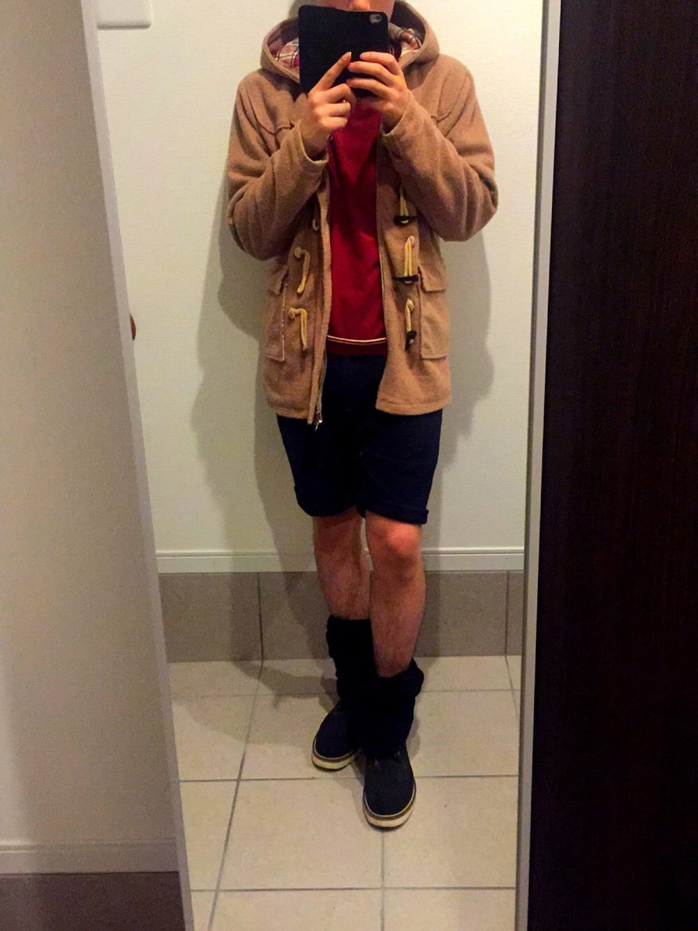 ダッフルコートに短パンに挑戦してみました\(^o^)/笑 今日は暇すぎたのでいっぱいのせれました〜 明日から仕事またがんばります。