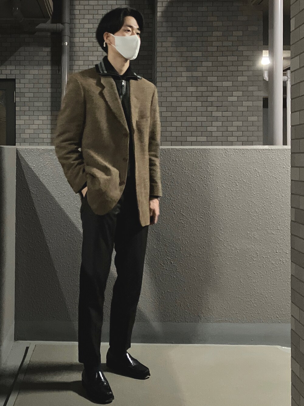 ヴィンテージのジャケットとユニクロ×JWアンダーソンコラボのニットトラックを使ったコーデ