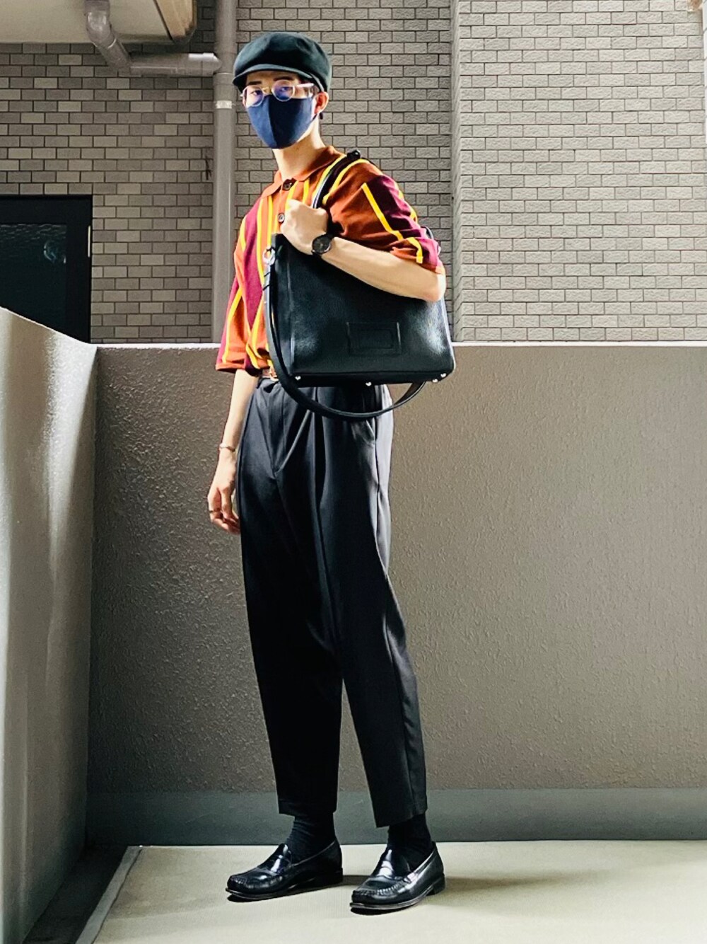 ご覧いただきありがとうございます✨ 鮮やかなニットポロを使って他は黒のモノトーンにすることでモード感を出してみました!