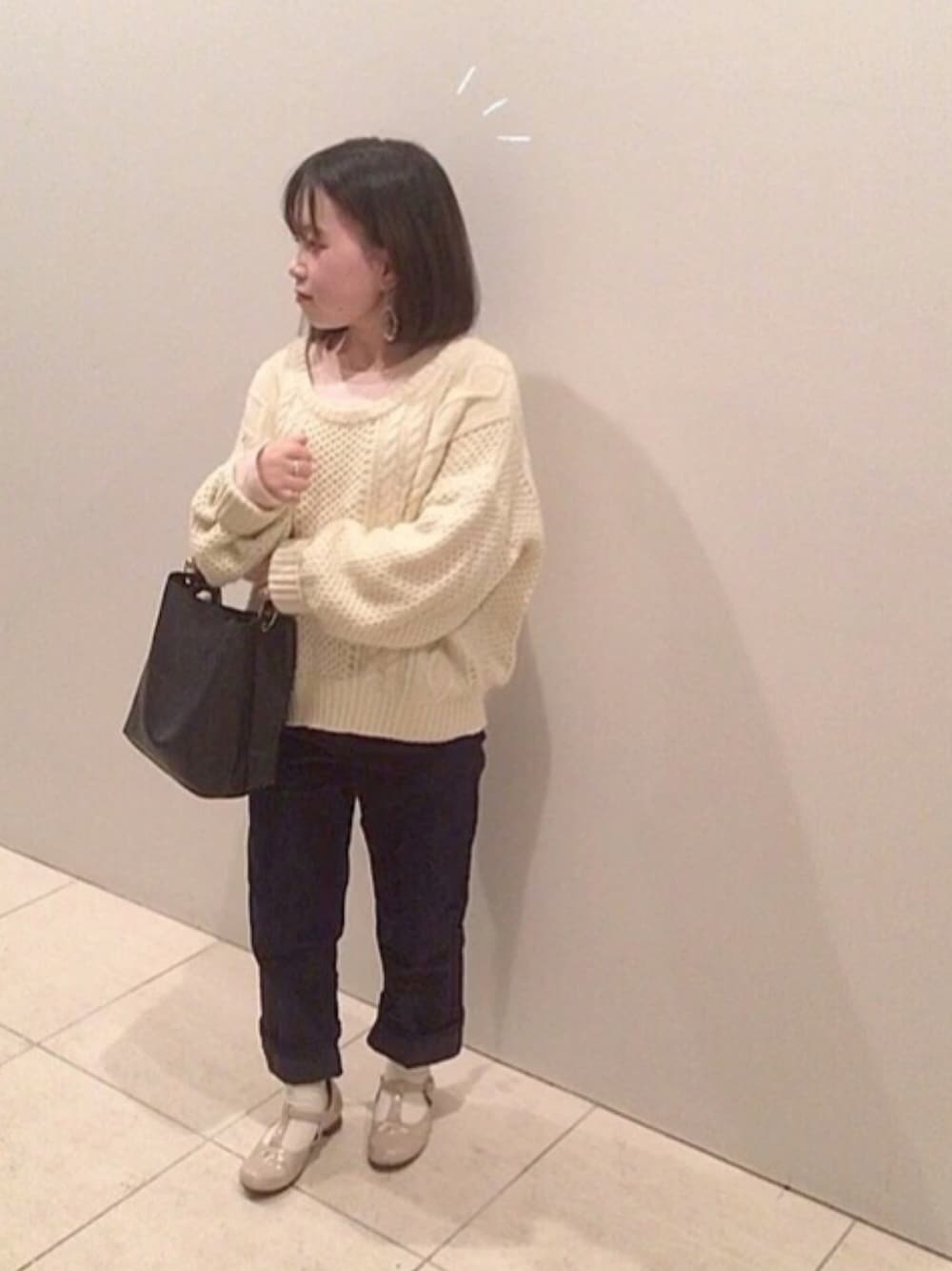 よもぎのニット/セーター「ケーブルクルーネック/ニット」を使ったコーディネート