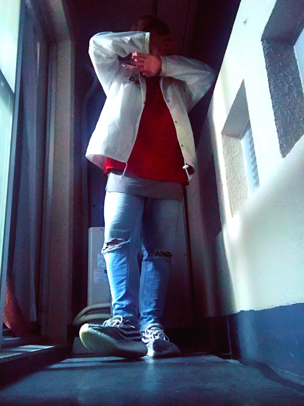 謎ポーズ発動笑 このジャケット2000円て最高(*⌒▽⌒*) でももう着る機会減るねー( ー̀ωー́ )