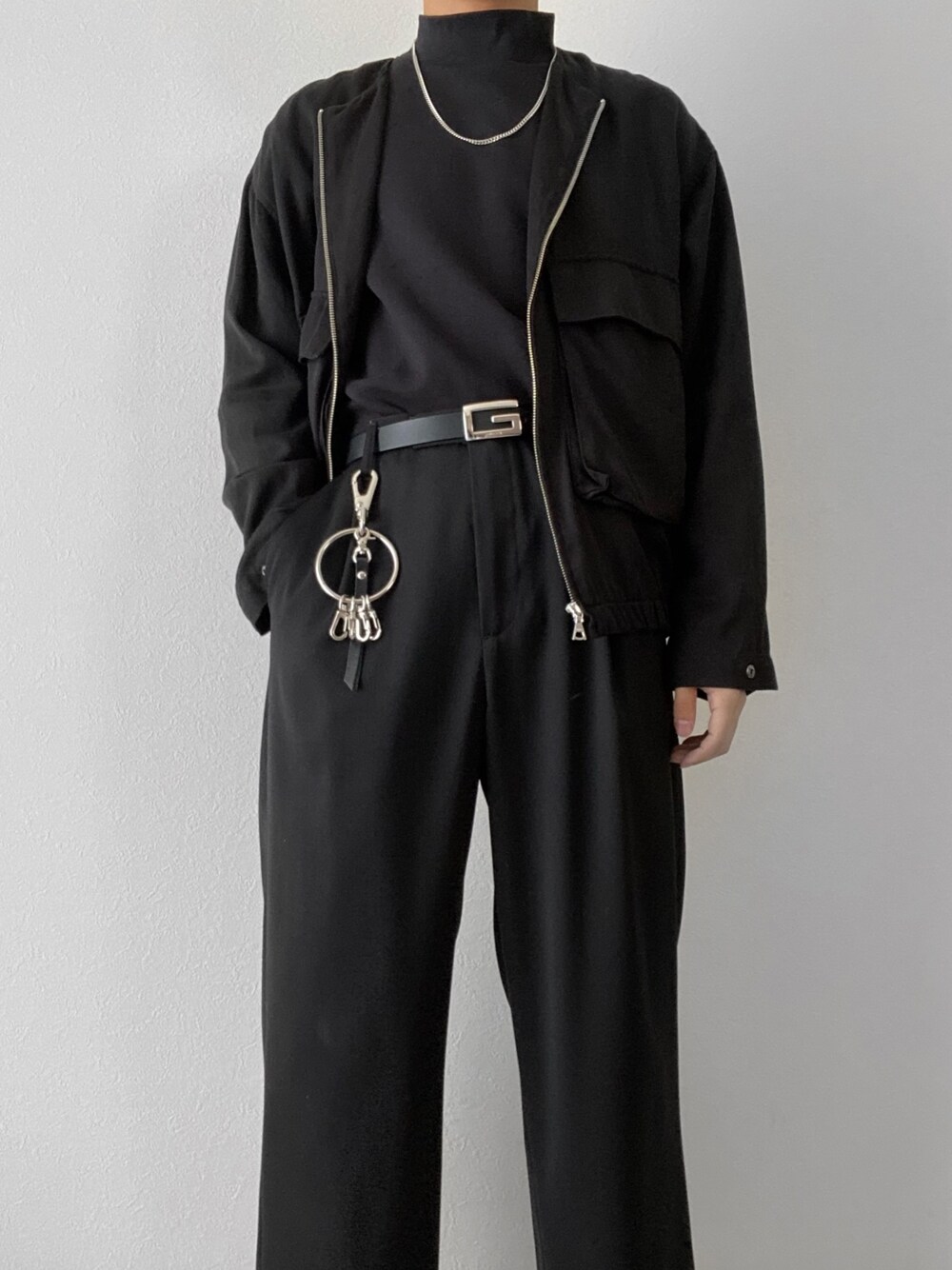 韓国ファッション風オールブラックコーディネート