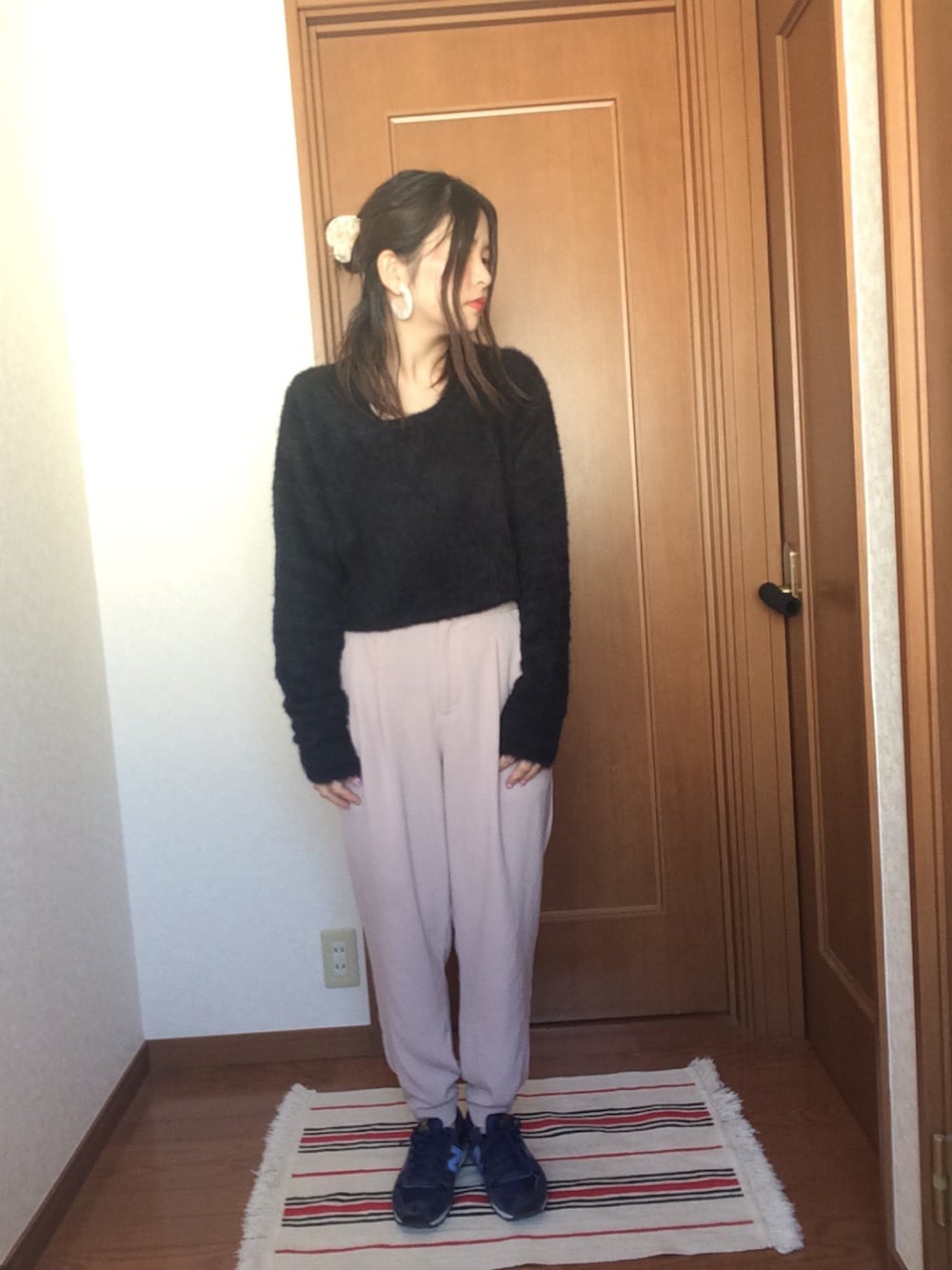 出勤コーデ☆ 最近のお気に入りはこのフープイヤリング♡ 大っきいから存在感あってグー☆