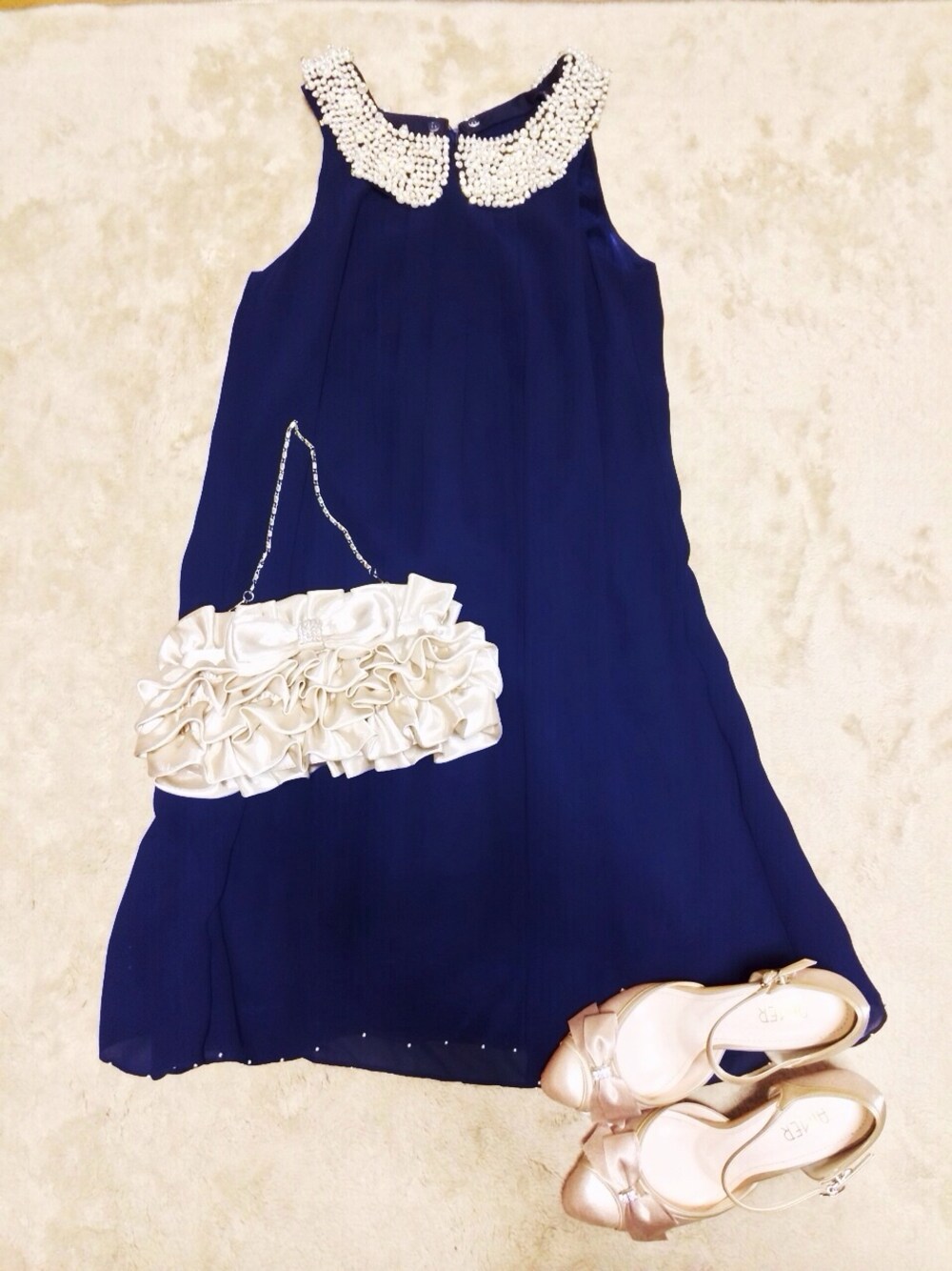 ドレスの襟の部分がビーズでできててお気に入り♡靴はうっすらピンクです♬