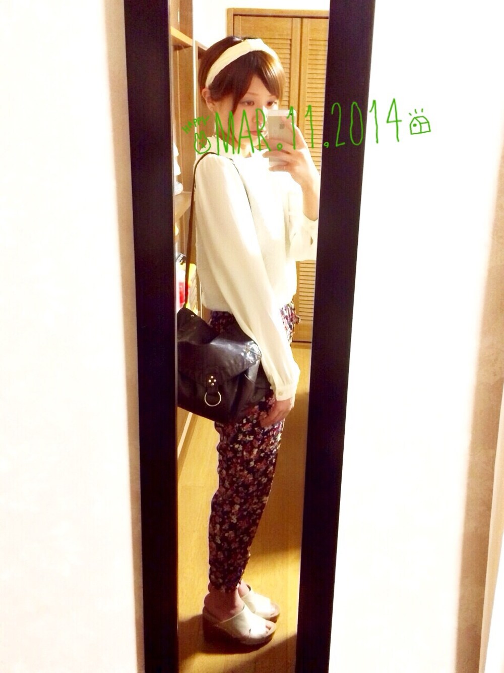 UNIQLOのパンツは去年のSALE時に買ったので700〜800円で購入♡足首がゴム素材で、好きに丈を変えられるのが便利♬ 私みたいに足が太くても、ゆったりしてるので隠せます!笑 今年もほぼ同じものが販売されていたのでよかったら♡ ヘアバンドはうすーい黄色なので春っぽく使えます☻
