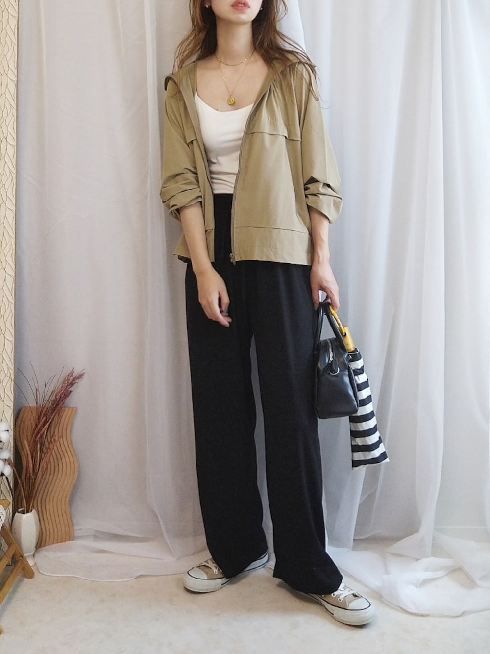 yu.のブルゾン「UV撥水ストレッチナイロンパーカー」を使ったコーディネート