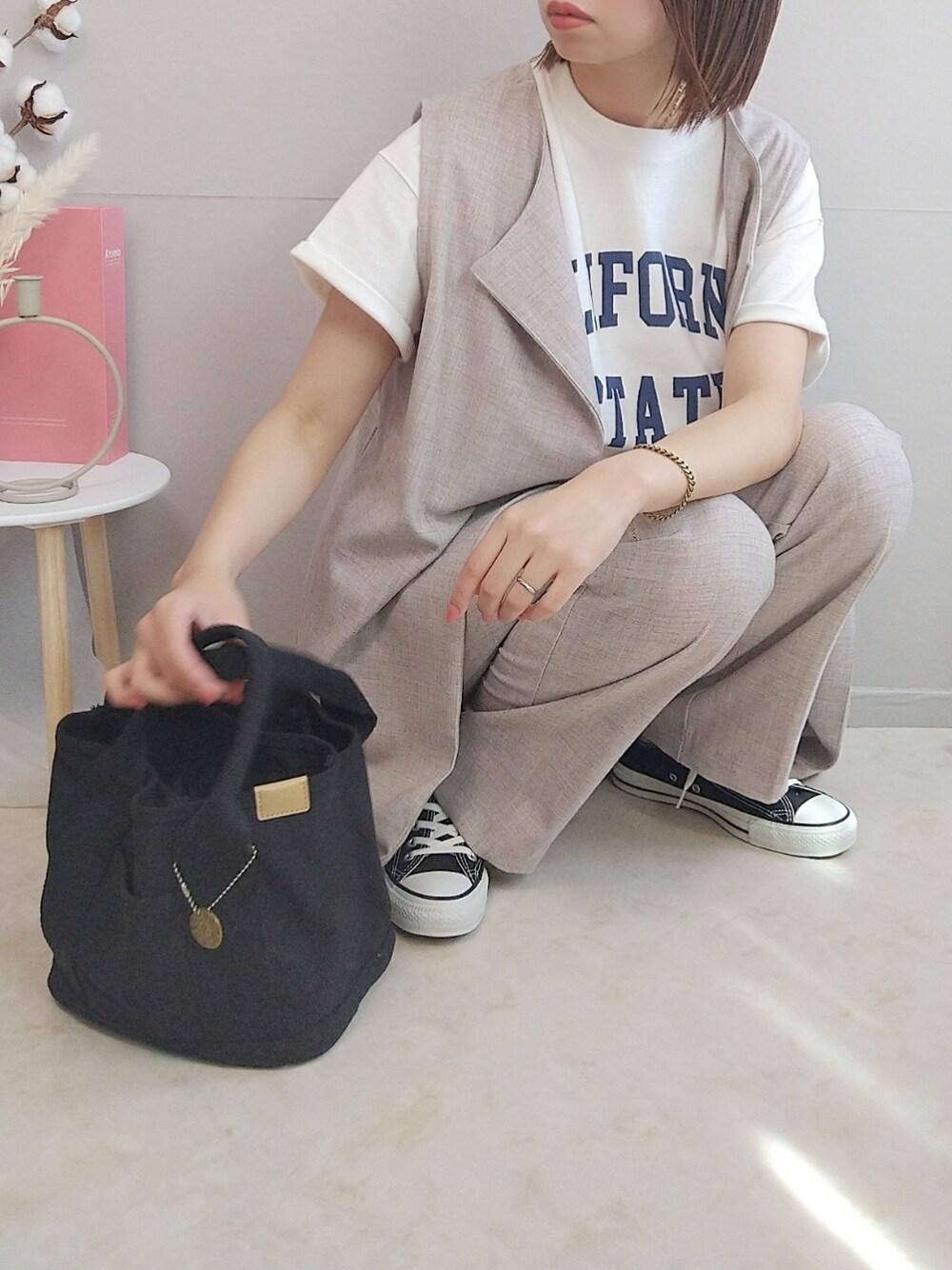 ご覧頂きありがとうございます𓂃𓏸 _______. omnesさんコーデ♡! ✔OMNES 。バスク生地 ロゴプリント フレンチスリーブTシャツ 半袖T シャツ ZOZOTOWNで10%off. プチプラの¥1,881 高密度の糸を使用してるから ほんとしっかりとした肉厚なコットン生地! 胸元の大きなプリントがアクセントになってて、程よくゆったりとしてます❀ 。ストレッチ杢ノーカラーロングジレ 高身長さんにもオススメな ロングジレ。 さらっとした生地感と絶妙なベージュカラーが とってもかわいい一枚です♡ 。ストレッチ杢センタープレススラックスパンツ シンプル〜なデザインは on.offどちらにも使えて◎ 同素材のジレとあわせてセットアップで 着てみました♡! ほんと楽ちんなのよっ🥺🌷 先日もこのコーデで公園行ってきました🙆♀ 休日コーデにもぴったり♡ _______. Instagram▷▷@____yuy.____ いつもありがとうございます♡ wearに載せてない写真もあるので 良ければ見に来てください·* #pr _______.