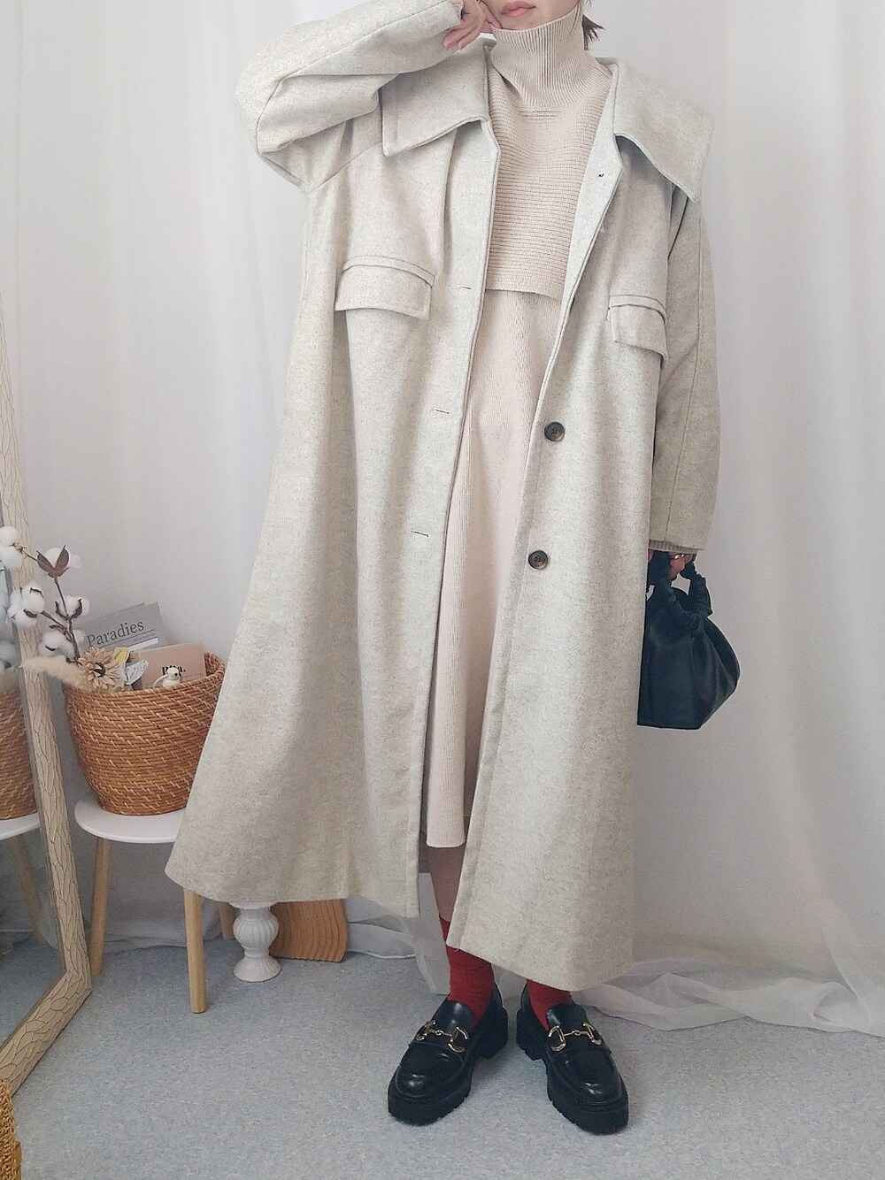 yu.のステンカラーコート「ビッグカラーコート」を使ったコーディネート