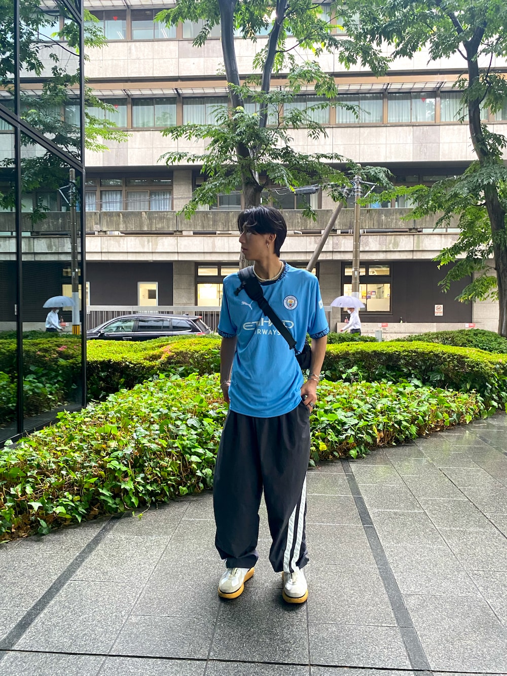 マンチェスターシティのサッカーTシャツをゆったりと着てわりとラフだけど、着飾ってる感があってとてもお気に入りな服装なので、是非いいねと押していただき、参考にしてほしい服装です!