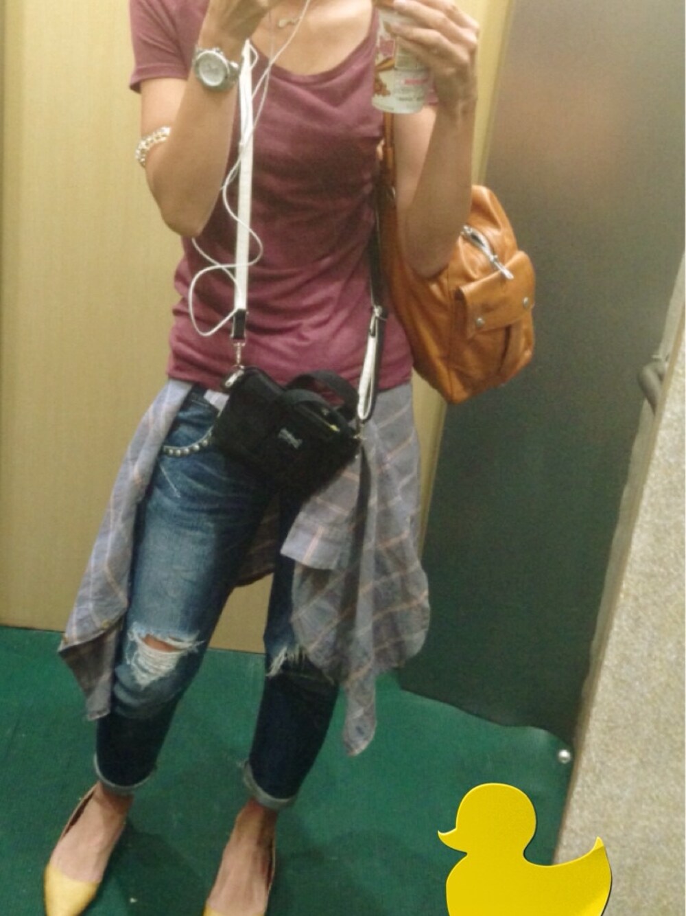 トップス:H&M シャツ:ungrid パンプス:楽天