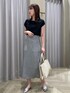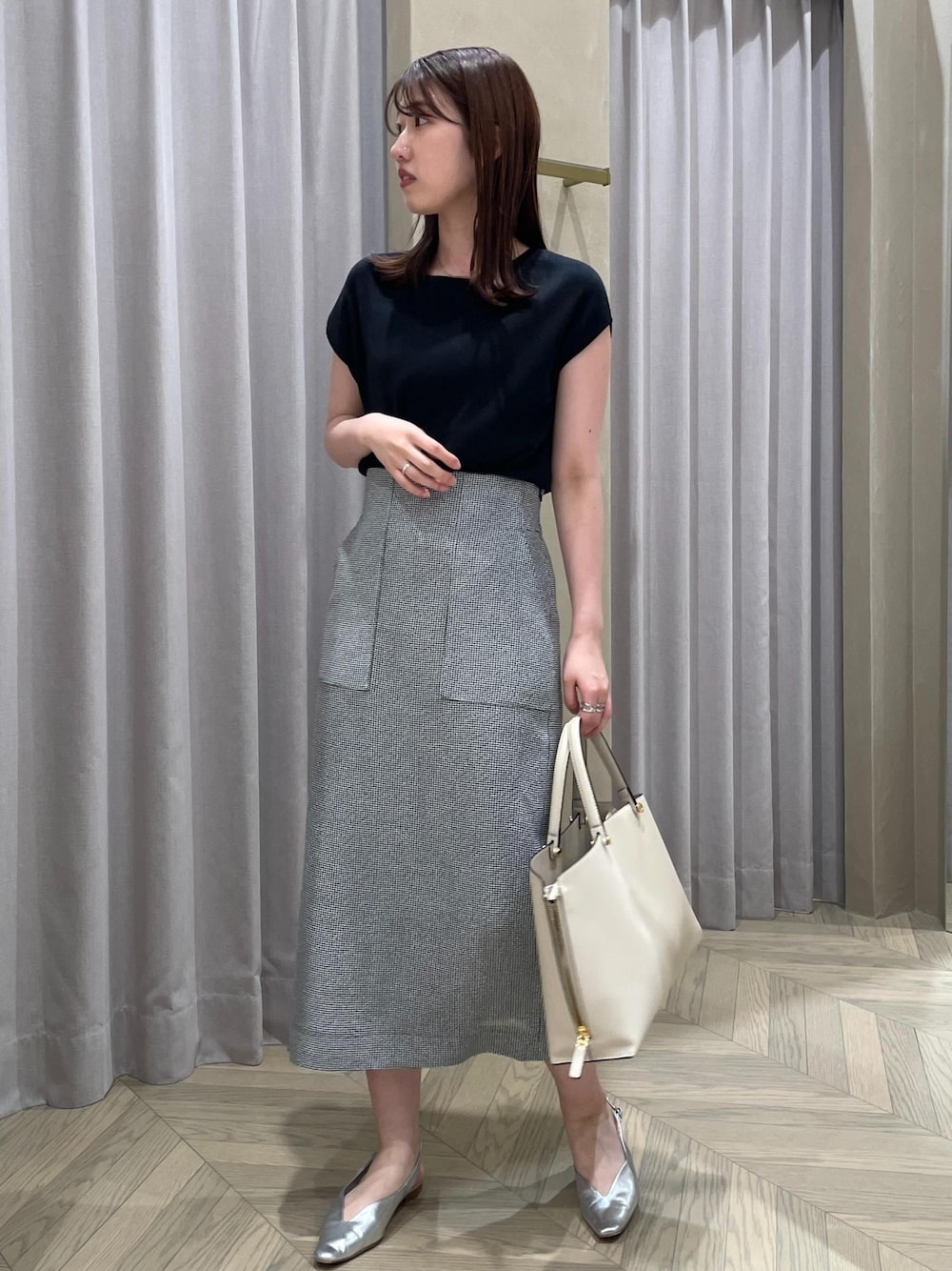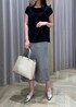 ストレッチ性があり柔らかい肌あたりで 2色買いされる方も多いICE COTTONシリーズ 今回はシンプルにタイトスカートと合わせて 通勤のキレイめスタイルにしました! インが苦手な方はアウトでの着用も◎ (画像7枚目参照)