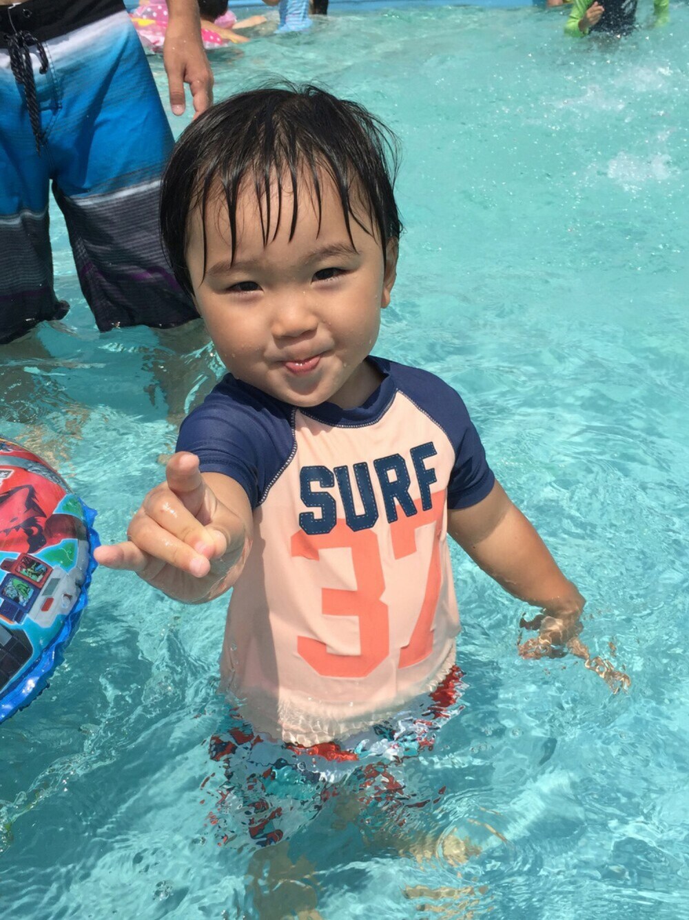 家族でプールへ 息子、初ウォータースライダー! 1度目、スピードの速さと水しぶきの強さに泣く 2度目、息子を守った結果、母溺れる でも、とにかく楽しんでくれたようなので 良かった(*ˊᵕˋ*)♡