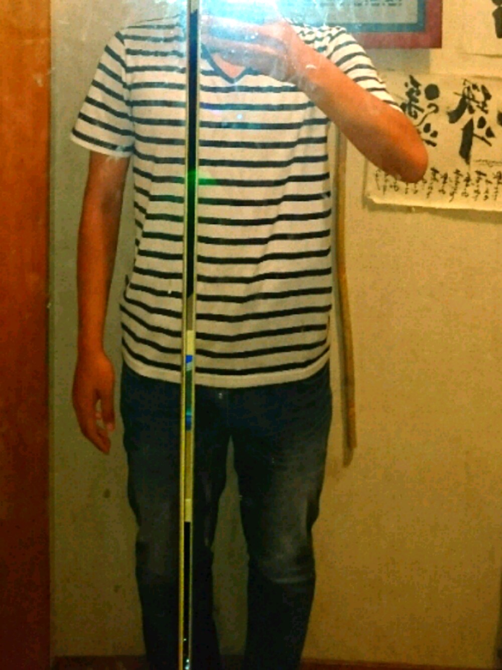 おつかいにいくだけだったからしんぷるに。靴はクロックスだったから撮ってないです笑 パンツは以前紹介したデニムパンツ シャツはよく分からない笑 無地なものが多いからこういうボーダーのも着てみると凄く新鮮な感じ。