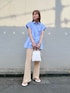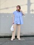 店頭でも大人気のブラウスです👕🪼 腰が被るくらいの丈感とフレンチスリーブで体型カバーもばっちりしてくれます^^ 細身のパンツやタイトスカートと合わせるとスタイルアップも間違いなしです! 夏らしい爽やかなコーデになりました🌻
