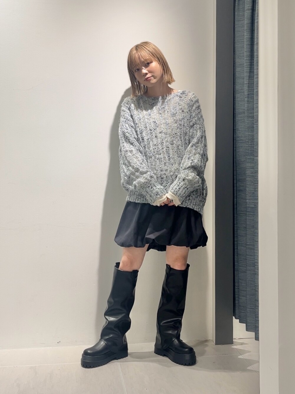 前後2WAYで使用できるネップニットです! リボンを後ろで結ぶと可愛らしい印象で着ていただけます!🎀 ゆるっとしたシルエットなのでミニ丈にロングブーツのバランスが◎