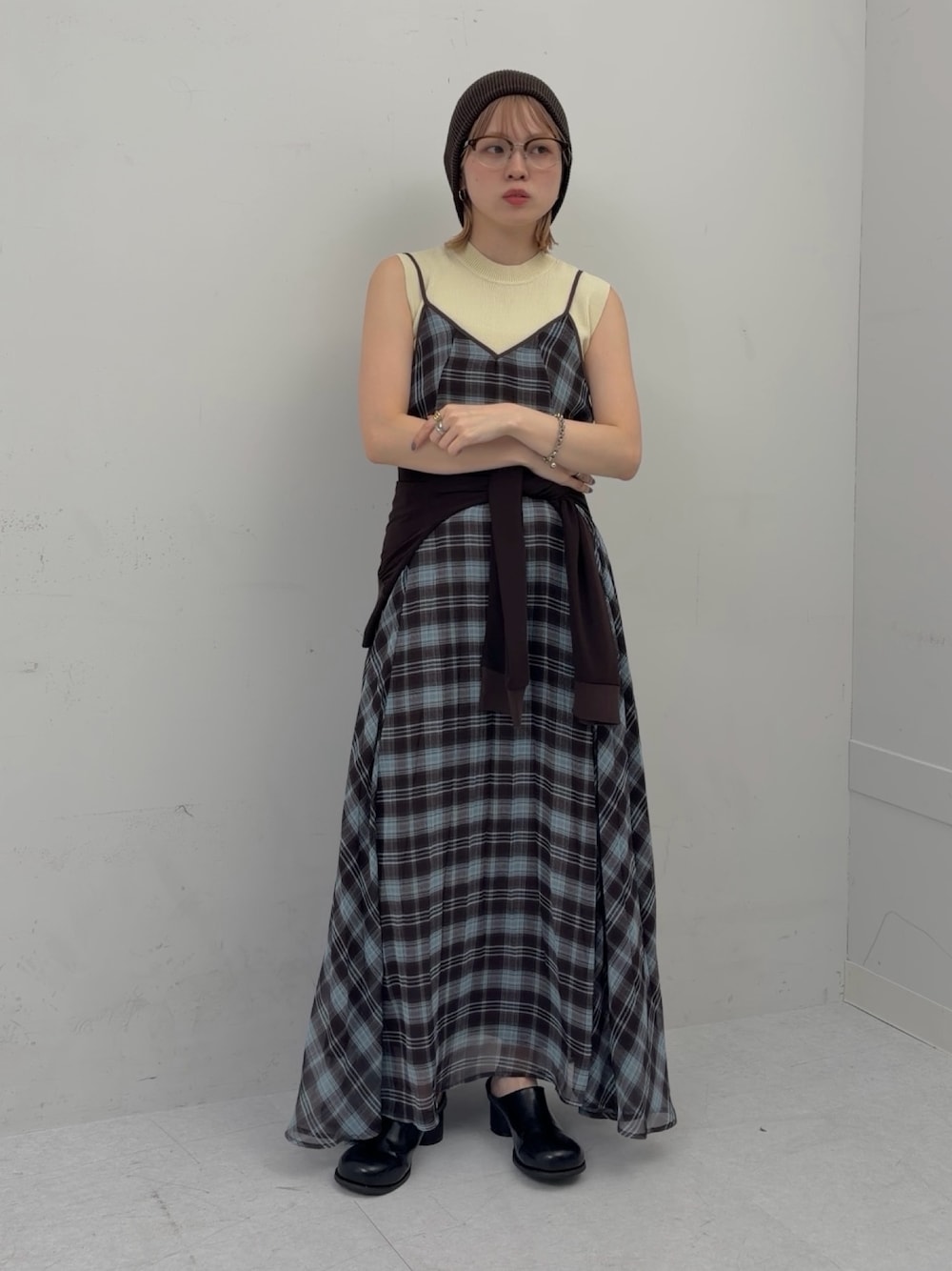 serika(KBF ルミネエスト新宿)のワンピース「チェックプリーツキャミワンピース」を使ったコーディネート