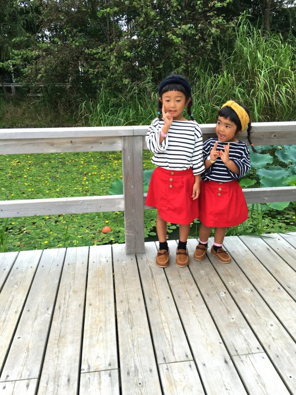 久々に家族でお出掛けday♡ 今日もまたお揃いこーで👭 ずっと欲しかった赤のスカートはlagomのセールでGET✌️✌️ 娘達も私もお気に入りコーデです😊 小窓は水族館での1枚📸 あと久々に母登場です! 笑