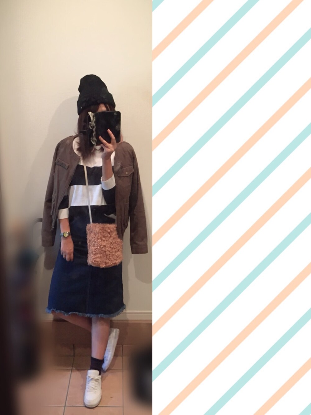 今日はカジュアルスタイル★ 今期のkastaneのファーバッグを差し色に😊 ジャケットは学生時代から着てる← だいぶ年季入ってます(笑)