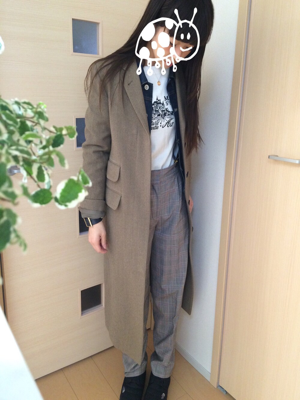 ボトムスの下にはタイツも履いて。 寒い日も冷えないように!! このコートとってもお気に入り。 たまにはストレートヘア。