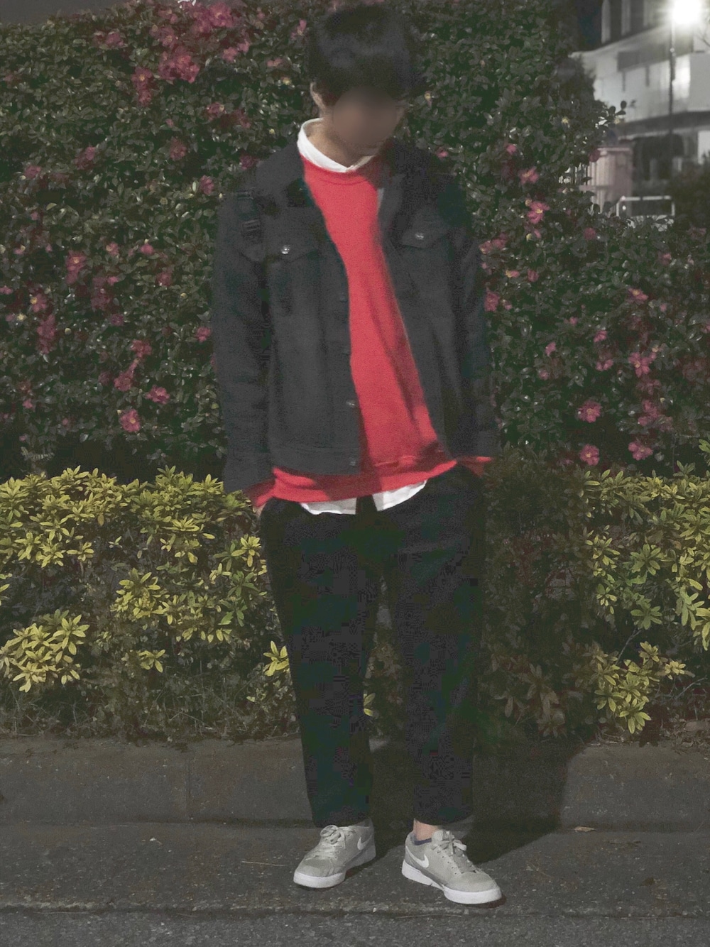 チャンピオンスウェットコーデ! デニムジャケット チャンピオンスウェット 白シャツ スウェットパンツ スニーカー カジュアルすぎる服装を白シャツをいれて引き締めてみました!