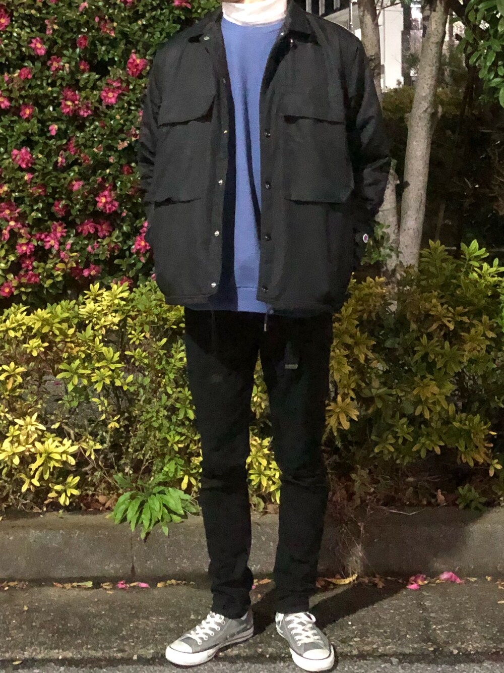 韓国風?コーデ コーチジャケット ビックスウェット タートルカット ガチャベルト スキニー コンバース YouTube、Instagramフォロー待ってます!