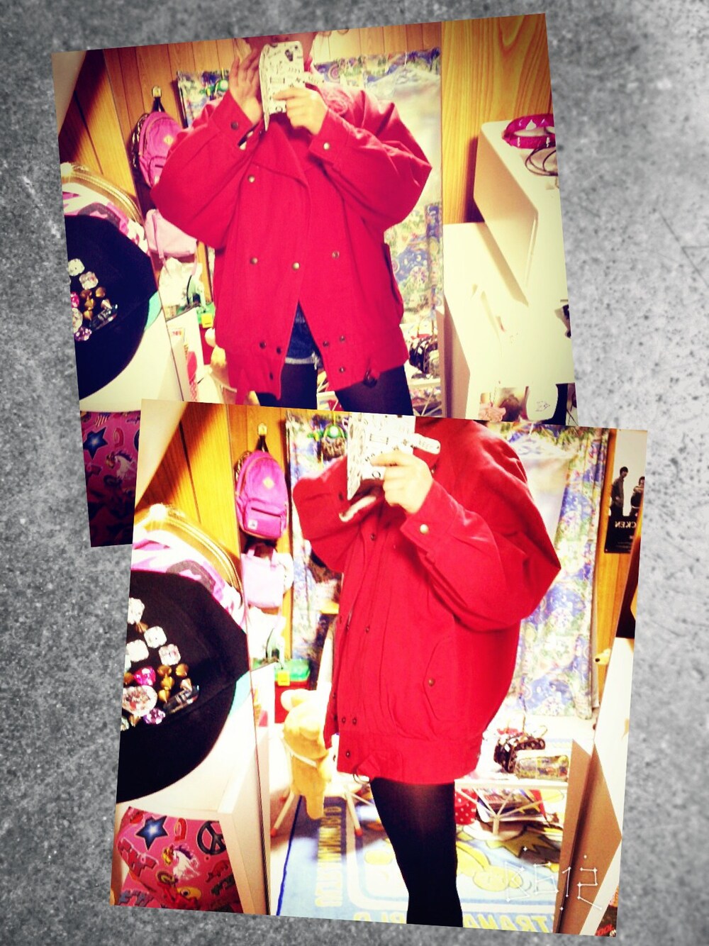 お母さんのお下がりの赤いアウター🙈❤️ 結構お気に入りー!