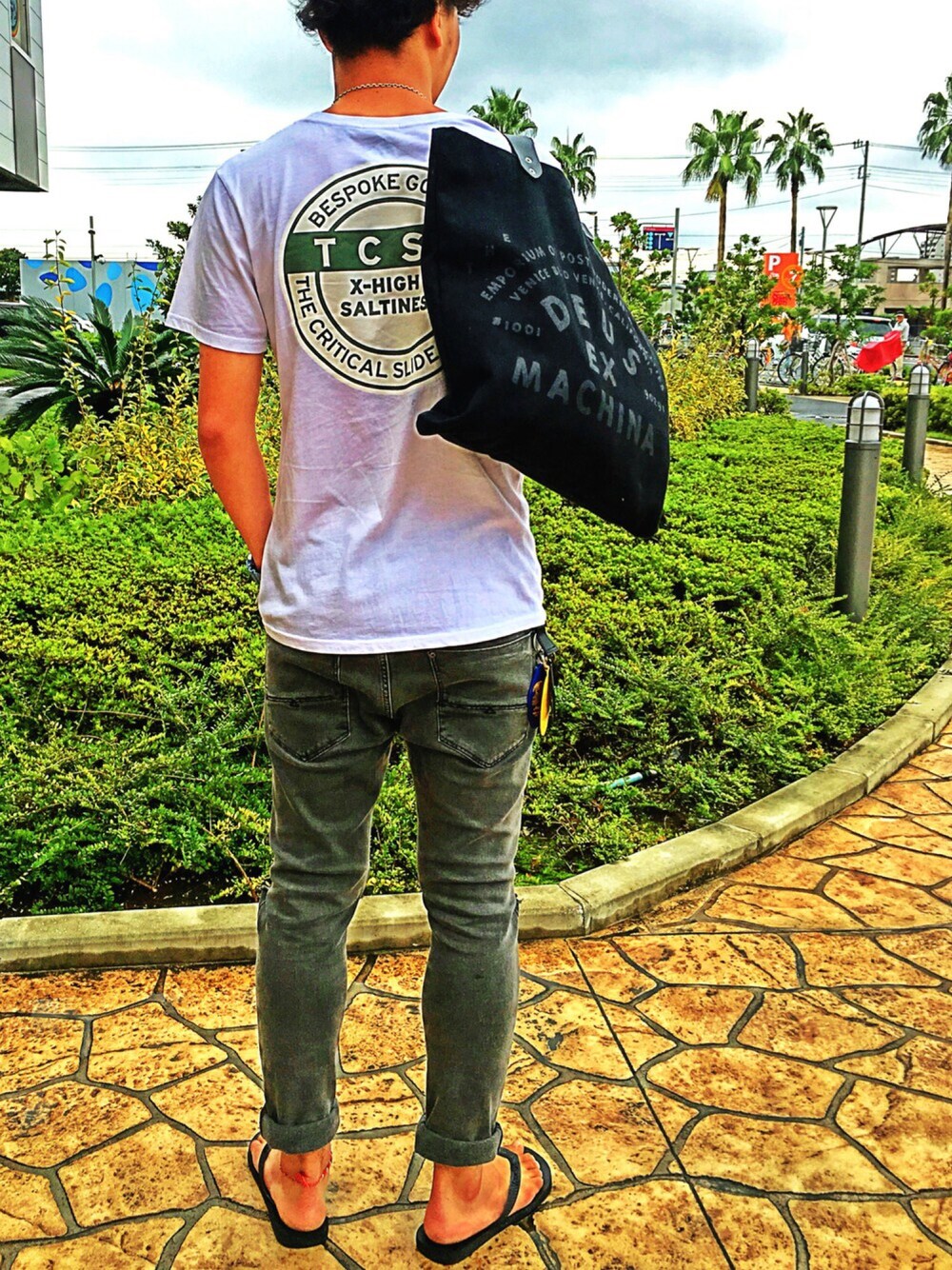 M♡のトートバッグ「BAYFLOW/【Deus ex Machina(デウス・エクス・マキナ)】HELMETTOTE」を使ったコーディネート