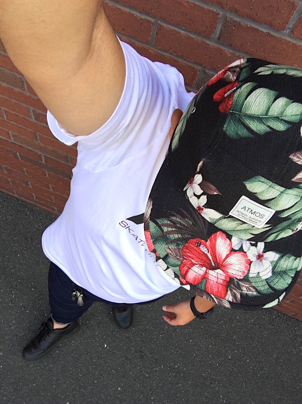 TRASHER×ボタニカル🌺 〜初夏🌺お気軽コーデ〜 ボタニカルキャップ、パンツのロールアップで『夏感』を! キャップとスニーカーの黒色でコーデに統一感を出した。 3ロールアップ 7:40 21〜28℃ 湿度80% 晴れ 快適