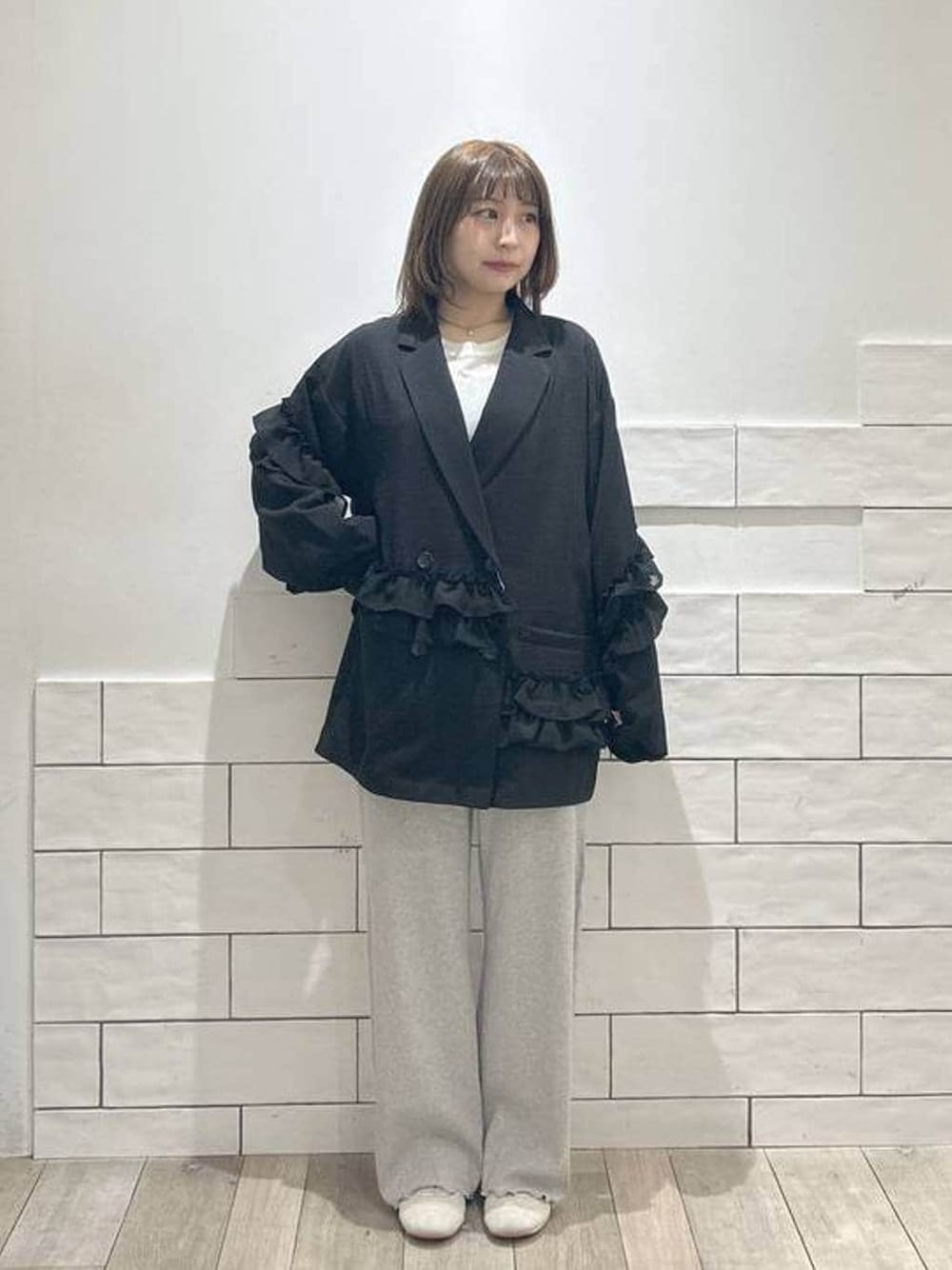 軽くて着やすいジャケットにウエストが総ゴムのパンツでゆるっと楽ちんコーデ🌿 パンツは折らずに履いています!