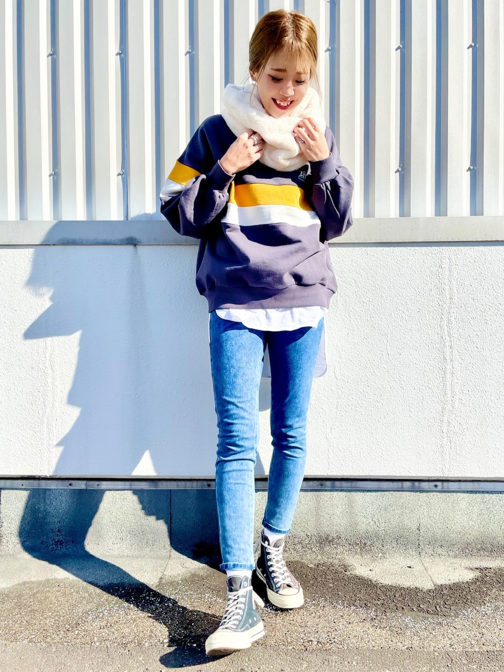 キリカエラインがポイントの Leeスウェット🚩 トレンドの型落ちゆったりシルエット😎 ゆるっと着用出来るサイズ感& 派手すぎない配色が大人の女性にも👌🏽👌🏽 今回は履き心地抜群✊🏽 「nobee」スキニーを着用して スッキリとしたスタイリングにしました💃🏼