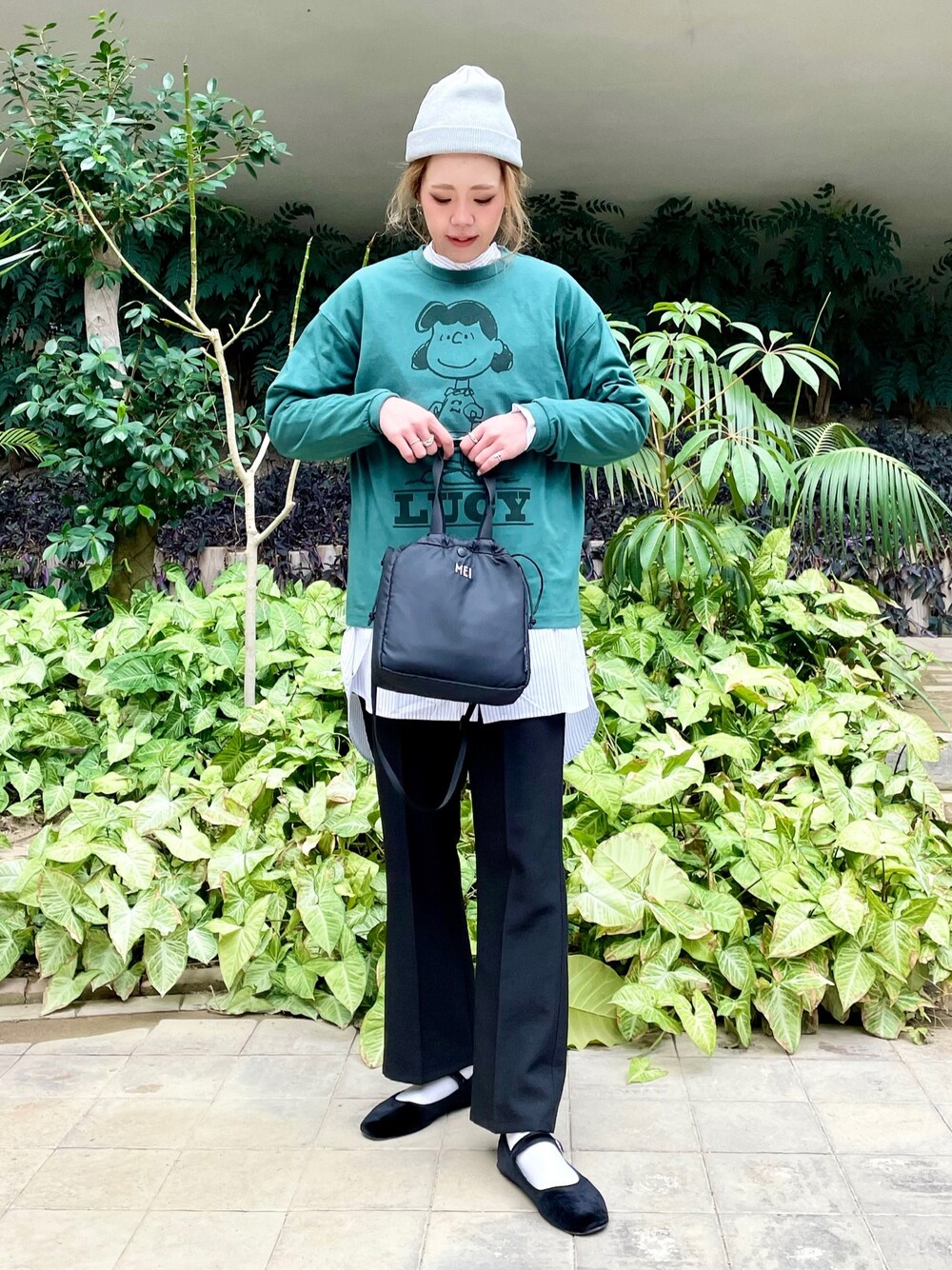 SNOOPYのプリントがかわいいロンT🐶💚💚 バックプリントも🙆🏼♀️💓 メンズアイテムになりますが、 今回はSサイズでジャスト👌🏽 (普段はレディースでLサイズを着用しています💁🏼♀️) 何枚でも持っていて便利なロンTは キャラプリントもおすすめです🔥