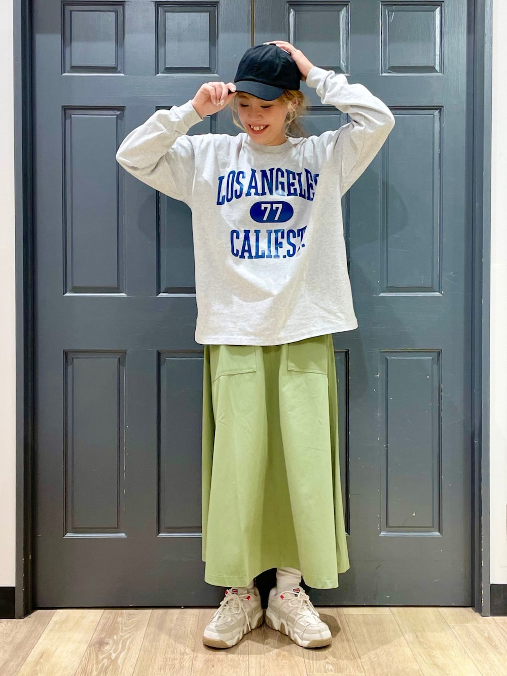カレッジロゴT×スカートでオトナカジュアルスタイル💁🏼♀️ 大きめのアウトポケットがポイントのベイカースカート🦖 173cmのわたしでも丈感長めで着用できました💯‼️ カジュアルでありながら女性らしく決まるベイカースカートは、 どんなトップスにも合わせやすく1枚あると便利なアイテムです👌🏽👌🏽 一緒に着用したロンTはメンズもの👨🏽 程よいゆるさで着用できるので、 女性にもオススメ✨ 6色展開でデザインもそれぞれ違うので お好きな1枚をお選びいただけます💁🏼♀️💖